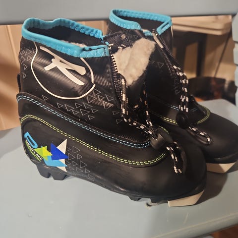 Langrennsstøvler for barn i svart syntetisk materiale med kontrastsømmer og mønsterdetaljer. Støvlene har varmende innvendig fôr og snøring foran med stramming. Såle tilpasset langrennsbindinger. Egnet til bruk på ski for barn.