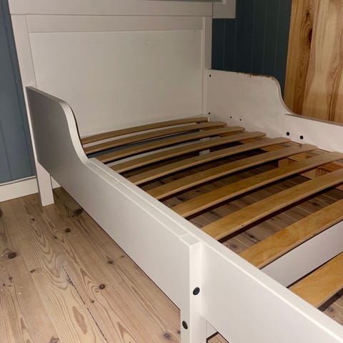 Har to stk barnesenger fra IKEA som gis bort til den første som kan hente. Sengene er uttrekkbare med en bredde på 80 cm og lengde på 200 cm. Kan også brukes som dagseng/daybed eller gjesteseng til barn eller voksne. Det er noen riper i metallet, men de er pent brukt.