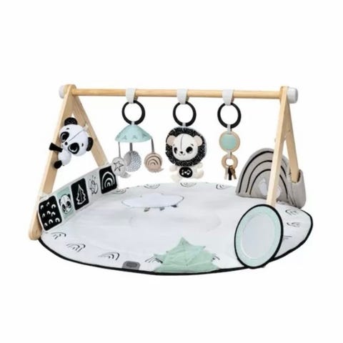 Den har 20 engasjerende aktiviteter og justerbare buer, med ringer til å henge leker i forskjellige høyder. Kan brukes fra nyfødt.