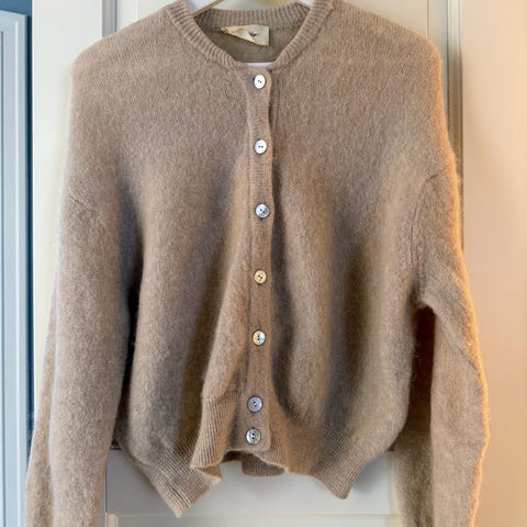 byTiMo cardigan i alpakkaull for dame i størrelse L. Cardiganen er isblå og har en myk, lodden struktur. Materialet består hovedsakelig av alpakkaull, med innslag av nylon, akryl og spandex for form og holdbarhet. Modellen har lange ermer, rund hals og knappelukking foran. Egner seg godt som et varmt lag over topper, skjorter eller kjoler i hverdagen eller på jobb. Jakken er nylig kjøpt og aldri brukt! Ny pris 2999,- og selges for 1450,-