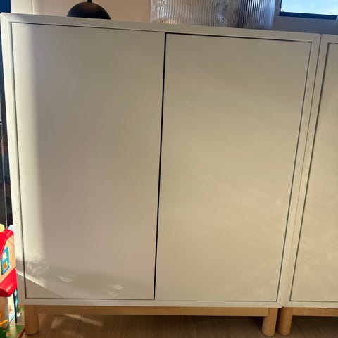 Hvit vitrineskap med flere seksjoner, skuffer og masse plass! I god stand :)