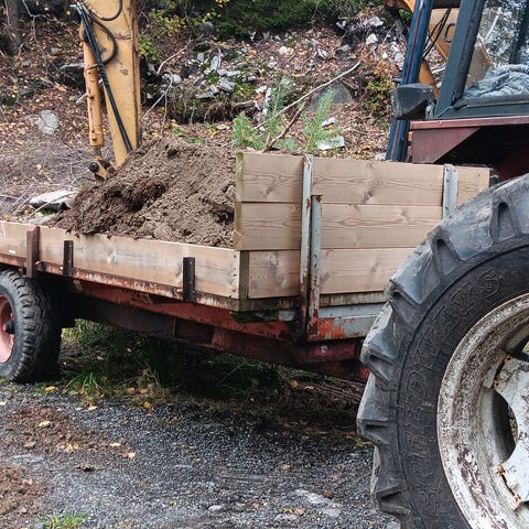 Har en 3 tons henger. Må ha et nytt hjul å ny tipp sylinder. Eller så e den ok stand