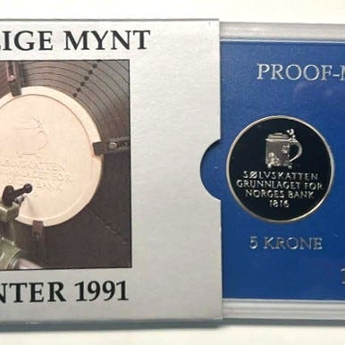Selger et flott myntsett fra 1990 i proof-kvalitet.