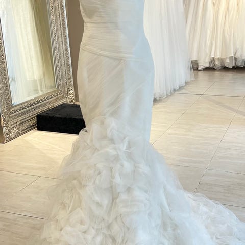 Denne kjolen selges som utstillingsmodell. Den er enten ute av produksjon eller selges til redusert pris. Kjolen har kun blitt prøvd på i butikk og har ikke vært brukt i bryllup. Den er ikke tilpasset, og er derfor i originale mål fra leverandør. Det kan forekomme mindre flekker, merker eller tegn til prøving, da den har hengt utstilt og blitt prøvd av kunder. Dette er tatt hensyn til i prisen og gir deg muligheten til å gjøre et svært godt kjøp.