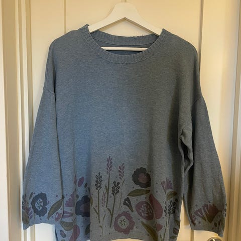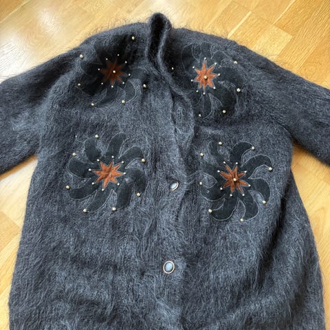đ©¶ BlĂ„grĂ„ cardigan uten knapper â med gyllen broderidetaljđŒ