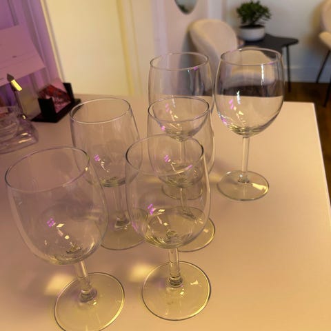 IKEA vinglass i gjennomsiktig glass. Klassiske vinglass med stett, egnet til servering av vin og andre drikker. Passer til bruk i kjøkken og spisestue, ved hverdagsbruk eller til selskap og sammenkomster.