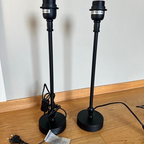 To lampe føtter i metall - 42 og 36 cm høye kr 50 pr stk
