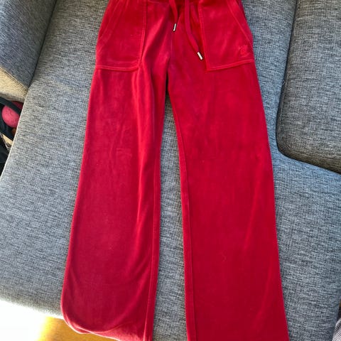 Juicy Couture joggebukse for dame i størrelse XS. Buksen er rosa og laget i 80% bomull og 20% polyester. Den har strikk og snøring i livet, sidelommer foran og to påsydde lommer bak med trykknapper. Mykt materiale som egner seg til hverdagsbruk og avslappede anledninger.