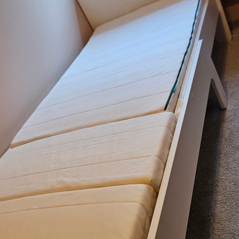 Jeg selger med madrass som du kan ta ut og vaske. Jeg har to senger, men en har en skrue som stikker litt ut.