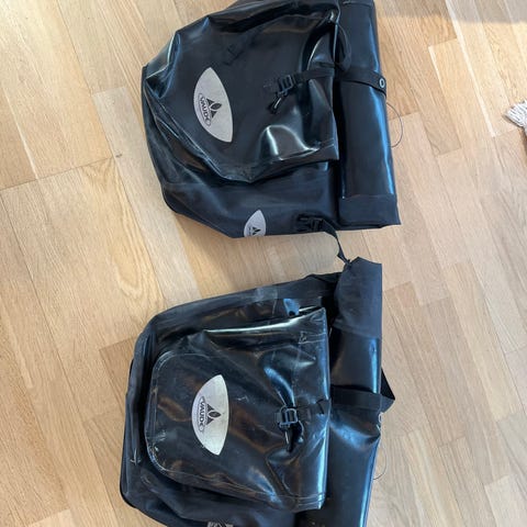 Vaude sykkelvesker for bakre bagasjebrett i svart, vanntett materiale. Veskene har rullelukking og festesystem til bagasjebrett, samt ytre lomme på fronten. Egnet for transport av bagasje på sykkelturer og pendling, og beskytter innholdet mot fukt og skitt.