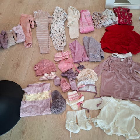 Litt av alt. Til og med utedress i 62 og hjemmestrikket ullsokker for nyfødt.