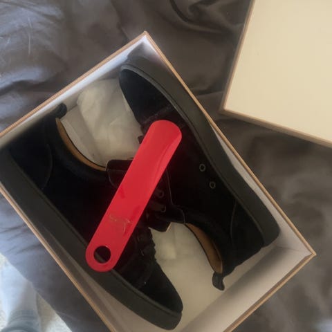 Christian Louboutin sneakers/joggesko i størrelse 43. Modellen er lave sneakers i svart farge med snøring. Selger fordi de ikke passet da jeg kjøpte de fra en annen her på Finn for 3000. Passer som fritidssko til hverdagsbruk. Kjøper kan be meg om flere mål eller detaljer ved behov. De er veldig one to one og passer både 43 og 42. Sender med helt hjem!