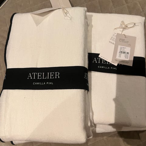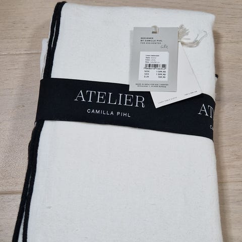 Kid Atelier Camilla Pihl linduk i beige lin. Duken er laget av 100 % europeisk lin og har dekorativ, farget kantsøm. Størrelsen er 140x350 cm, med en vekt på ca. 1200 g. Passer som bordduk til spisebord og andre større bordflater der man ønsker et tekstil i naturmateriale.