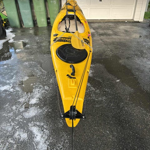 Naturligvis noen bruksmerker rundt og under båtene, men dette er solide havkajakker i hardplast som tåler røff bruk. Ingen større skader eller mangler.