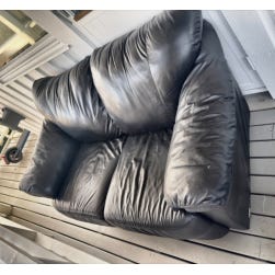 Deilig 2 seter skinn sofa gis bort. Pen blå farge