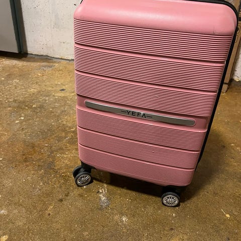 Koffert i gammelrosa fra Dondonna 40cm X 48cm X 17cm noen bitte liten gnagsår syns på bild- ellers som ny.