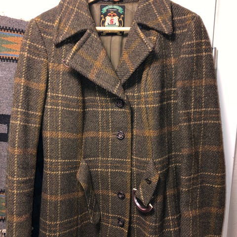 Selger denne vintage kåpen som er helt norskprodusert og ekte SandhillTweed. Fint feminint snitt med lommer i sidene og belte. Unik mulighet å få en helt spesiell kåpe til en rimelig penge. Passer en 38–42. Pris 600kr.