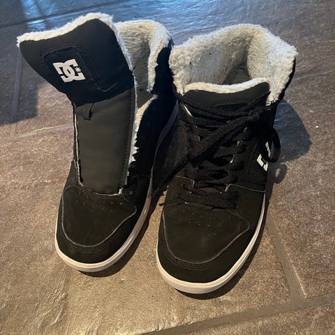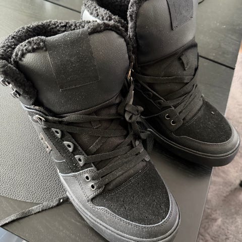 DC Shoes høye sneakers/vintersko i størrelse 43. Mellomhøy, lett og vanntett vintersko med pålitelig grep for vinterforhold. Klassisk knyting med lisser over vristen.