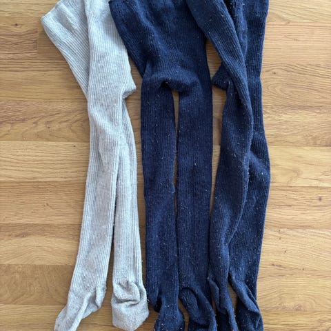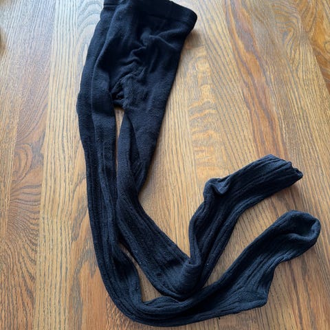 Strømpebukse i 60% ull, like pen, men noe slitt (ikke hull) under føttene.