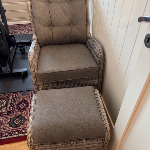 Fint brukt gyngestol med krakk selges for 400 kr Ved snarlig henting selges den for 300 kr