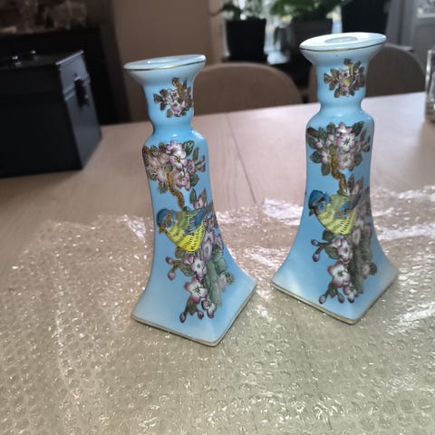 Håndmalt porselenslysestake fra den anerkjente ungarske produsenten Herend.
