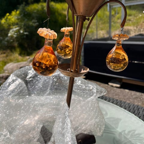 Den ene lampen har fått litt medfart og trenger å festes i toppen. Eller brukes forsiktig. Da holder skjermen seg på plass. Men kan enkelt fikes med litt tape. Pga skavankene på den ene selges begge billig for 500kr samlet.
