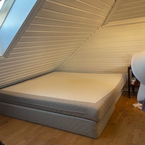 Madrass medium hard. Vendbar. Oppbevart røyk- og dyrefritt . Trekk avtagbart, med glidelås Kan vaskes på 60 grader.