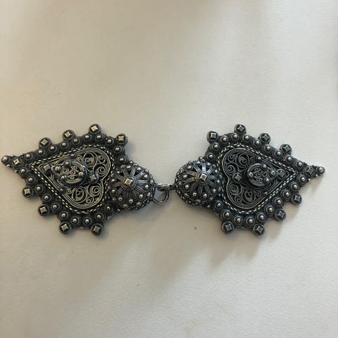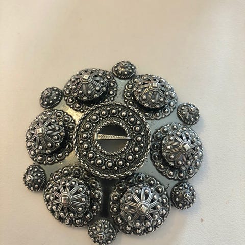 Halsring D 4 cm til Telemark Bunad i oksidert sølvplett materiale(Forsølvet med ekte sølv) Pusses med sølvpuss. Fremstår som ny