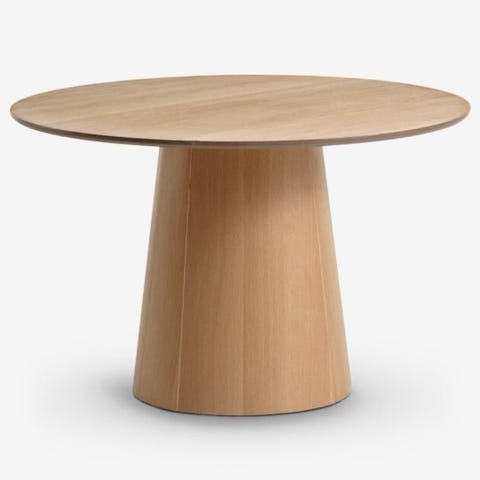 Jysk rundt spisebord i lyst treverk. Bordet har rund bordplate og en konisk søylefot som gir god benplass rundt hele bordet. Passer som spisebord i stue eller kjøkken, og gir plass til flere stoler rundt bordet avhengig av størrelse på stolene. Overflaten har synlig trestruktur som gir et naturlig uttrykk.