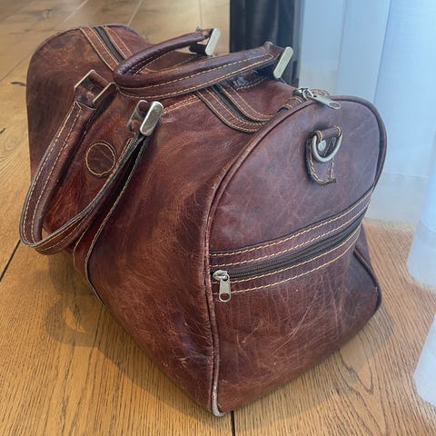Jeg videreselger denne solide og romslige weekendbagen fra Royal Republic jeg kjøpte i fjor på Finn, da jeg har innsett at jeg har for mange bager og vesker. Bagen er i god stand selv om den har noen bruksmerker. I følge tidligere eier er den ca 20 år, så har vært med en stund. Jeg kjøpte den for 1200 men selger den rimelig for å frigi plass i skapet.