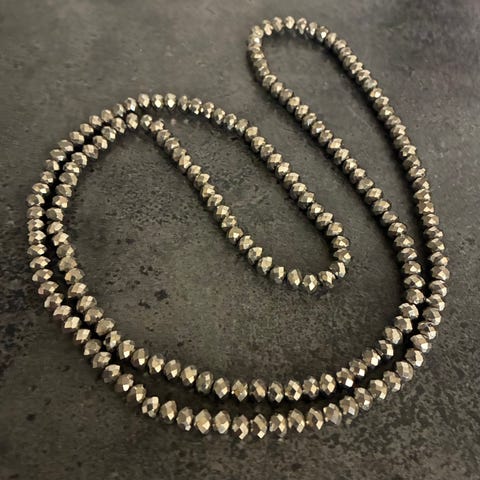 Ubrukt pent halskjede med grå perler, gullfarget lås