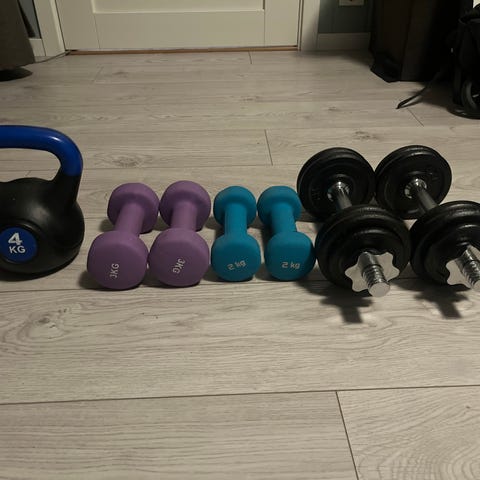 Denne kettlebellen er laget av plast med et kompakt interiør. Den har en massiv og profesjonell konstruksjon. Den veier 10 kg. Takket være materialet skader den ikke gulvet under treningen.