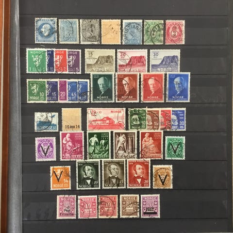Lott med Norske ubrukte merker selges. Fleste av merkene har spor av fordoms hengsling i limet,andre er tørre og har hengselsrester. Her kan man finne flere komplette serier samt universitetet. Kan hentes etter avtale,ved forsendelse kommer 31,- i tillegg