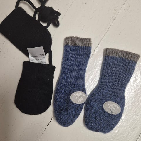 2 par votter og tøffler selges . Det er vasket med milo . Stø 3-6 mnd