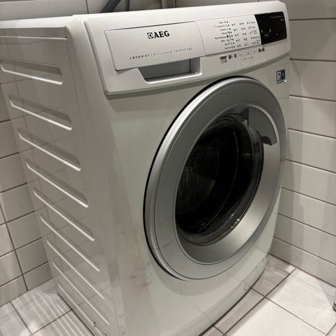 Selges billig pga sprekk på plast av døren (se bilde). Det er bare kosmetisk skade og påvirker ikke funksjonaliteten av maskinen.