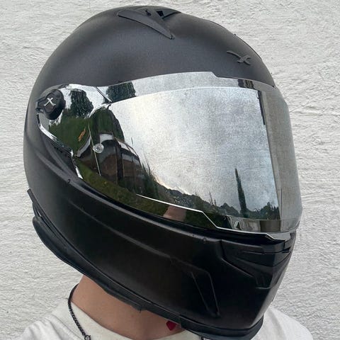 Mc hjelm fra Thansen brukt 2 ganger, ikke vært mistet i bakken eller veltet med. Ikke den mest komfortable hjelmen, men fungerer fint som reserve til passasjerer