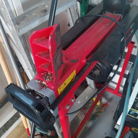 God vedkløver 37cm åpning, med 4 tonns trykk. Italiensk, forhandlet av Stjørdal Industri. Lekker litt olje når den står plant, sett forlabbene på en 2cm plank så lekker den ikke.