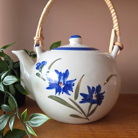 En nydelig tekanne i en sage grønn farge med håndtak i bambus. Ikke blitt brukt. Kun stått som dekor