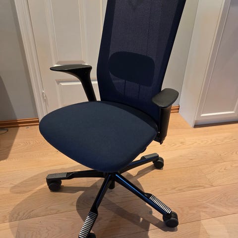 Selger en Håg Sideways møtestol, type 9742, i ekte sort skinn.
