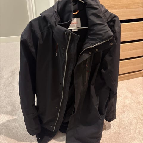 Swims Lausanne Parka str. L selges kr 1500. Pent brukt , ingen bruksmerker . Jakken har hette og lukkes med glidelås og knapper. Vind og vanntett , super allværsjakke . Tapede sømmer . Avtagbar primaloft innerjakke , som kan brukes for seg selv. Selges for at den er for stor til meg . Nypris over 6000 .