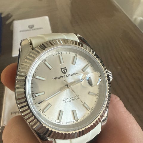 Selger en heilt rå og nydelig herreklokke. Pagani Design bruker casio innmad og er derav en veldig god kvalitet i henhold til pris! Klokken her har en nydelig Daytona Look med sort skive og gull detaljer skiller den seg godt ut i mengden. Den føles også heilt nydelig på armen takket været gummi rem! Klokken er betydelig lite brukt og kommer i orginal esken og med orginal papirer!