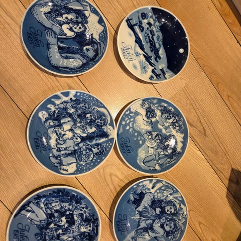 Stavanger flint blått serveringsfat med gulldekor. Svak kakelering grunnet alder.
