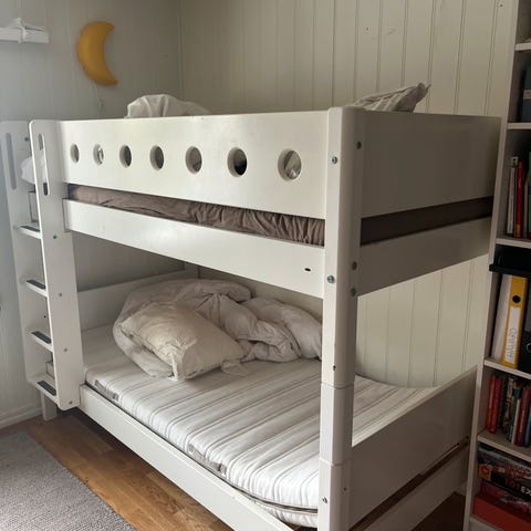 IKEA Släkt seng selges. Med ekstra seng i skuff samt oppbevaring i skuffer. Ubetydelig brukt. Gode madrasser medfølger.