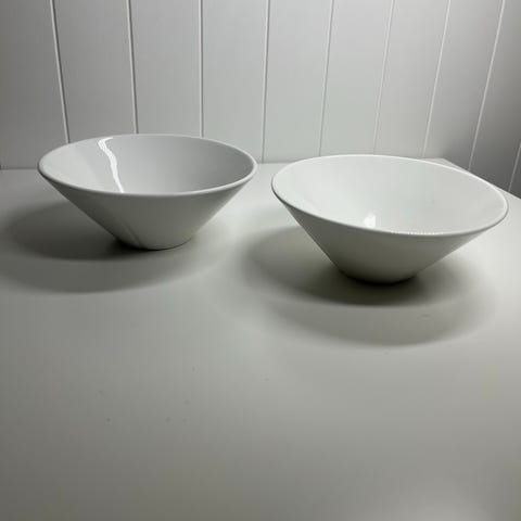 Den mellomste skålen har et lite skår i seg. Lite synlig.