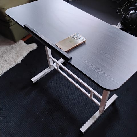 Justerbar høyde bord med hjul - Solid tre og metall nattbord, mobil nattbord egnet for studenthybel, soverom, hjemmekontor, enkel montering, moderne møbel med hardtre-ramme (plassbesparende)