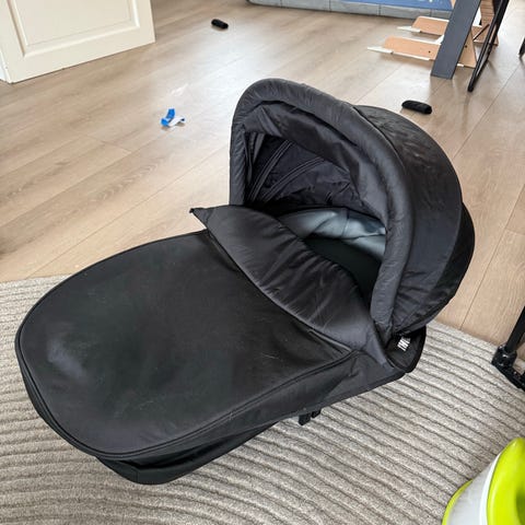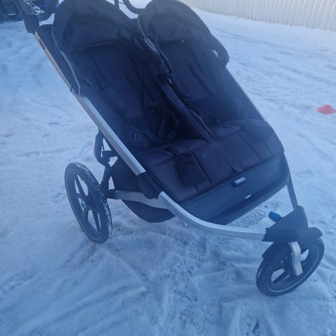 Selger en Thule Urban Glide løpevogn. Den har stått ubrukt i ett år og har derfor ikke luft i dekkene. Usikker på om noen av dekkene er punktert, men tror det bare er fordi den har stått stille over en lang periode. Har vært oppbevarte innendørs i gangen.
