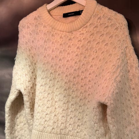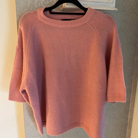 Theory genser i 100 % cashmere for dame i størrelse M/L. Merket L, noe liten. Kortere model som når omtrent til hoftene. Delikat gammel rose farge med « ribbon» rundt halsen.