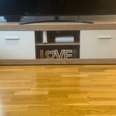 En hylle/liten tv benk, ser ut som ny.ingen skrammer. Fargen er svart. Selges pga flytting. Ny pris er 200 kr