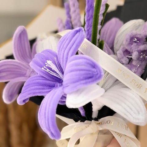 Blomstene er laget av satin og er allergivenlig. Lager og selger også andre gaver krystaller osv.I julesesong også kranser og andre dekorasjoner