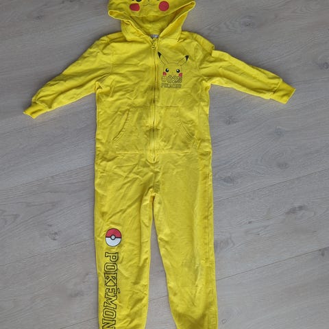 H&M heldress for barn i størrelse 110/116. Heldressen er unisex og kommer i gul farge. Materialet er polyester med myk, fleeceaktig overflate. Modellen har hette og glidelås foran, samt lange ermer og ben. Egnet som kosedress eller kostyme til innendørs bruk.
